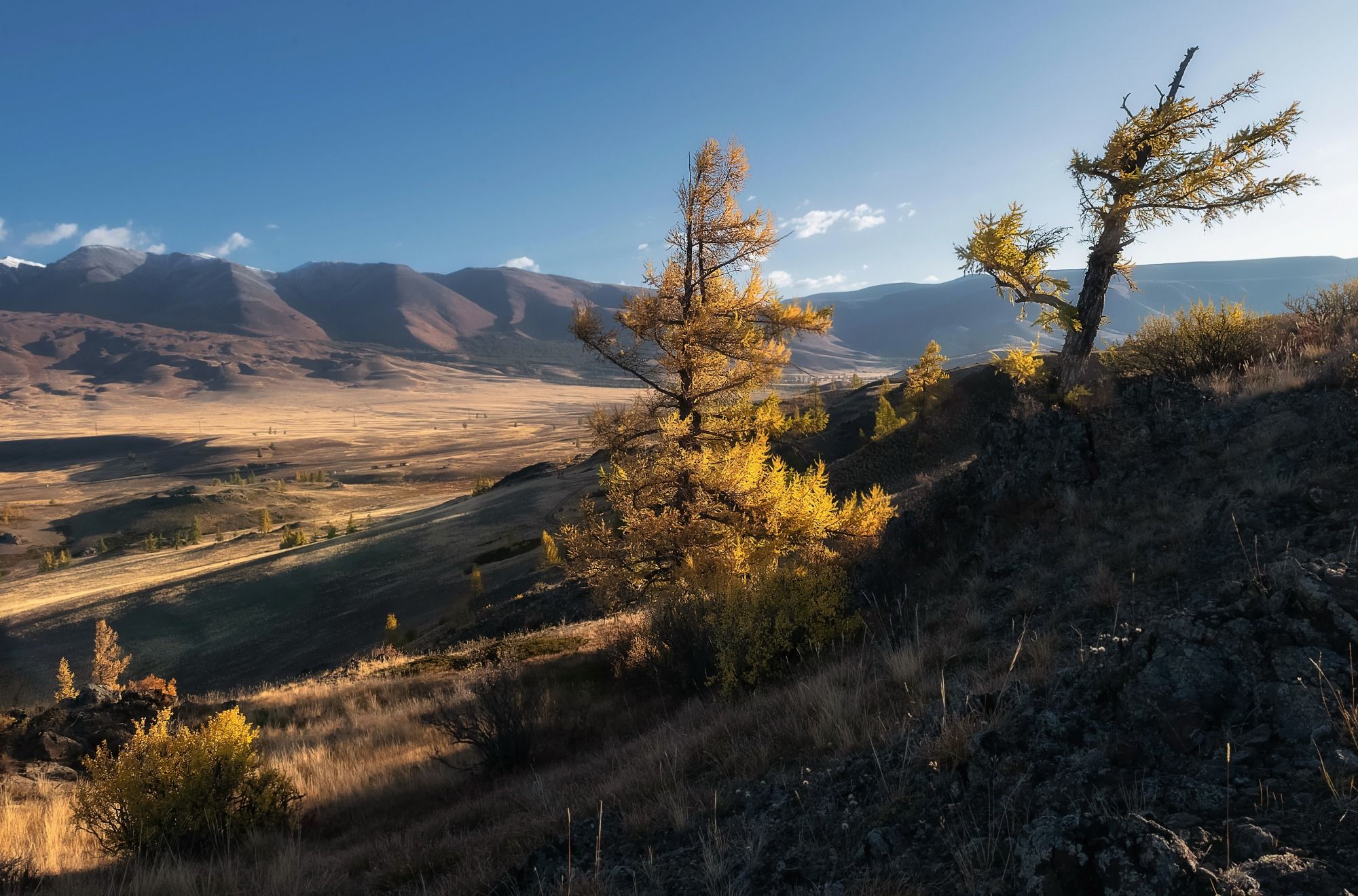 алтай, осень, пасмурно, лиственницы,, Фомина Марина