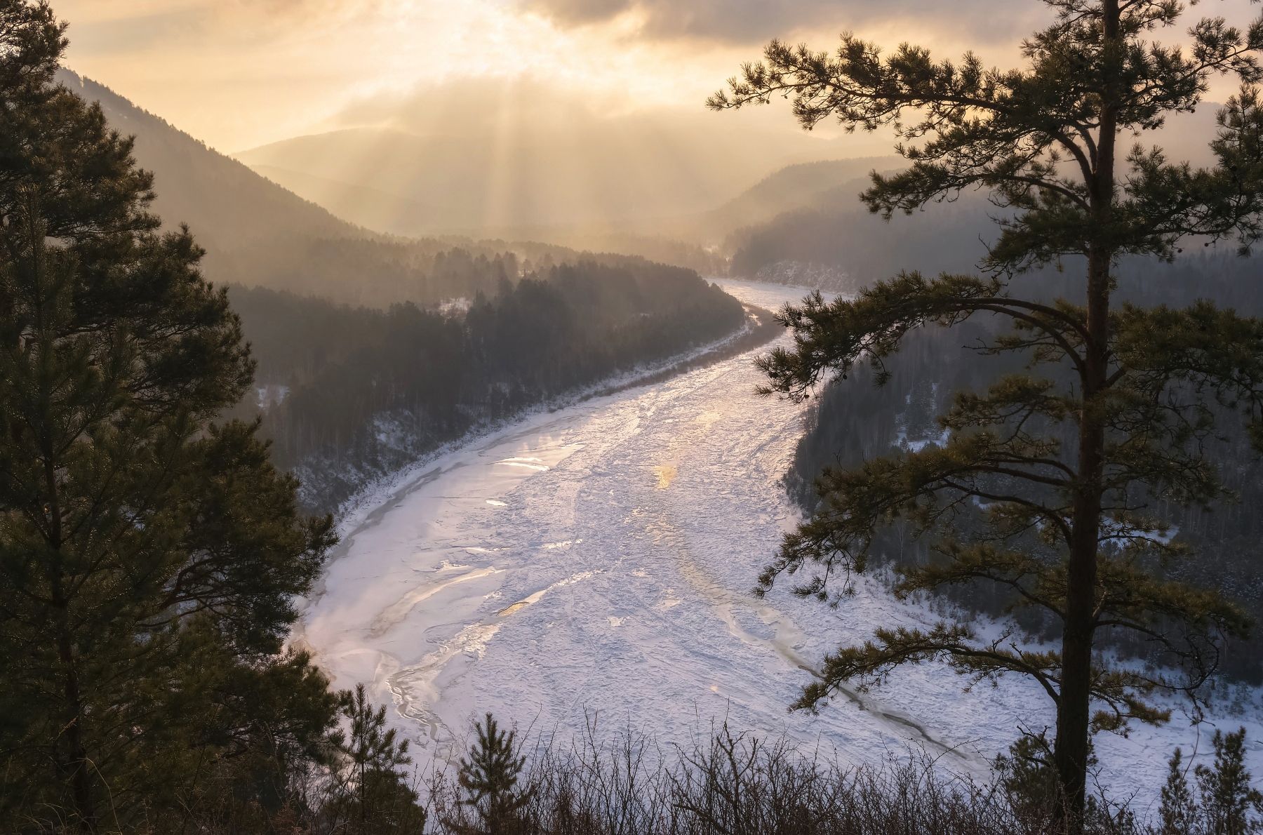 зима, река мана, рассвет, лед, поворот реки, Фомина Марина