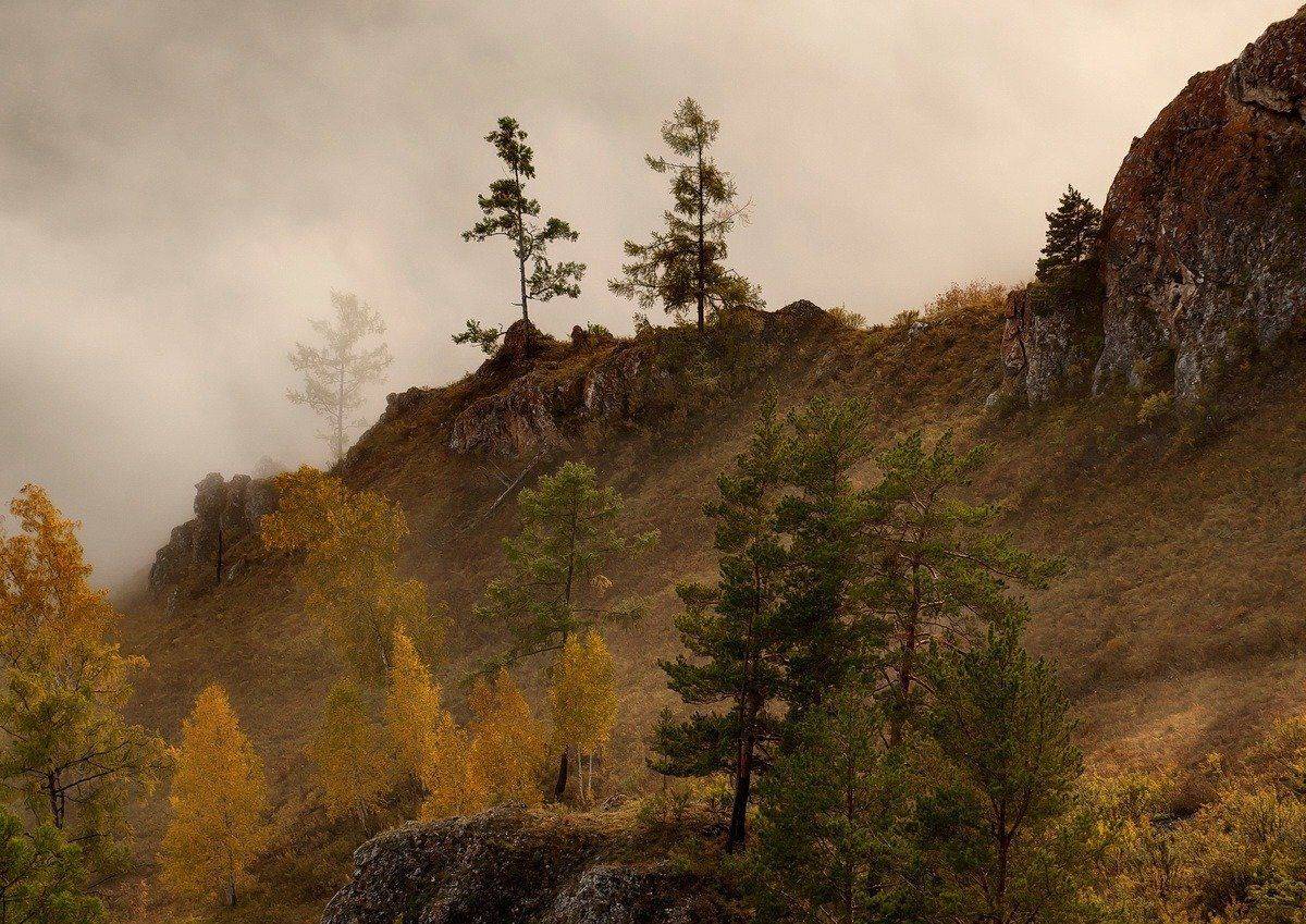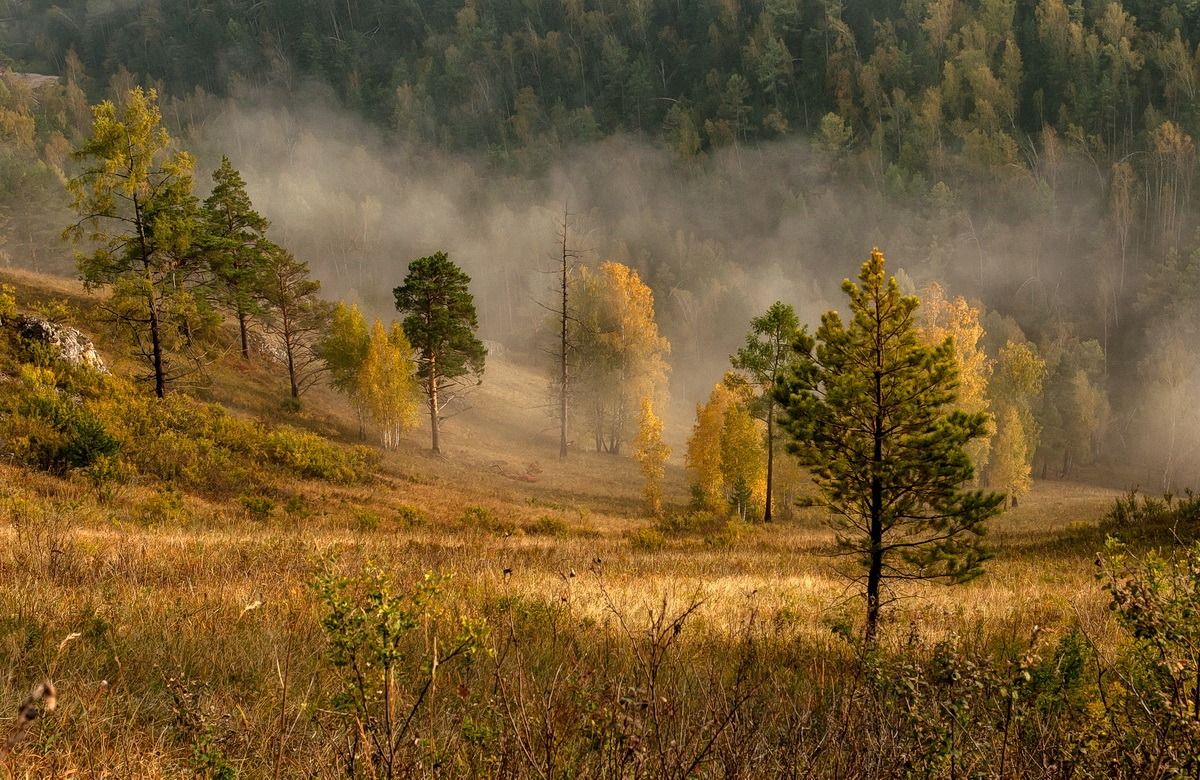 Торгашинский хребет.Еще теплое осеннее солнце потихоньку вытесняло холодный утренний туман.
