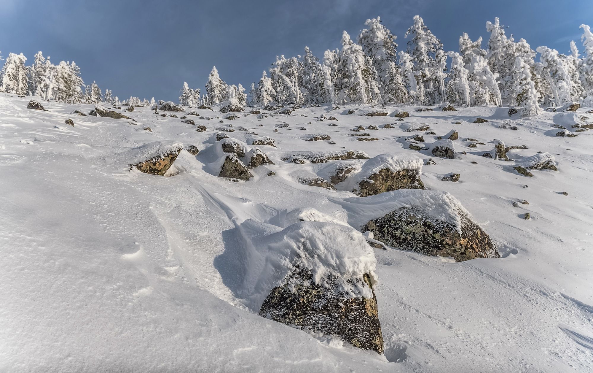 сибирь, аргыджек, зима, снег, иней, ели, камни, Фомина Марина