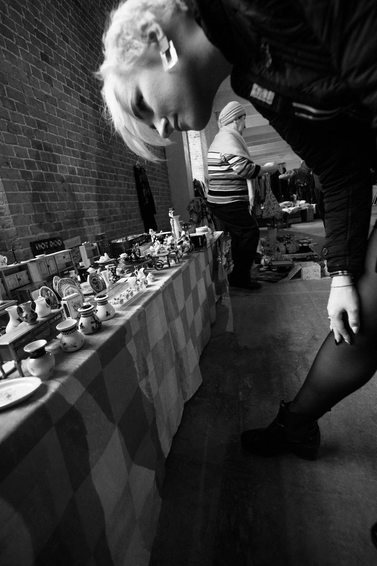 Барахолка, музей Москвы, sekond hand, прилавок, рассматривать, ближе, статуэтки, фарфор, торговля, посуда, женщина, Дмитрий Ткаченко
