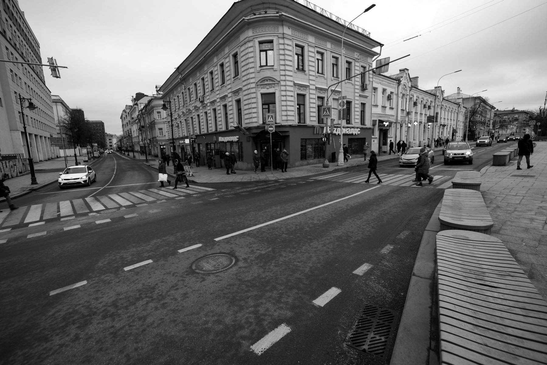 Москва, Чистые пруды, Мясницкая, бульвар, перекрёсток, пешеходный переход, малолюдно, Дмитрий Ткаченко