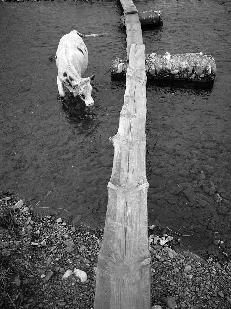 корова, река, мост, доски, опоры, Дмитрий Ткаченко