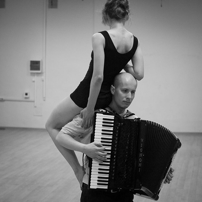 Черная женственность – совместный проект хореографа Соны Овсепян и аккордеониста Арсения Строковского. Фотографии с репетиции.