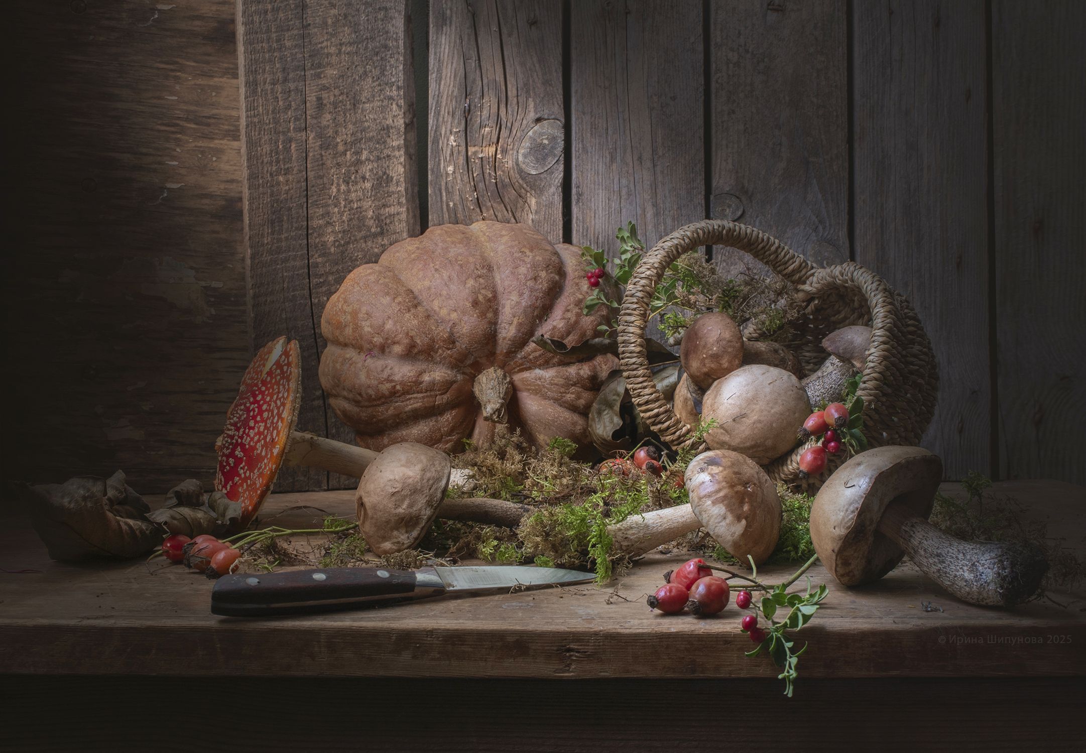 Это просто потрясающе красиво! Поймала себя на мысли, что уже долго сижу и внимательно рассматриваю каждую деталь - подсыхающие ягодки шиповника, сухой листик и крапинки на шапке мухомора...Это просто сказочно красиво и художественно!