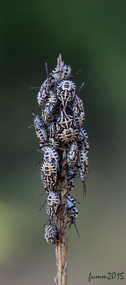 Думаю, они просто согреваются ночью. Так ведут себя обычно только нимфы (личинки).Но один вид я снимал всех возрастов вместе.Только однажды и тех клопов я боле не встречал ни разу.