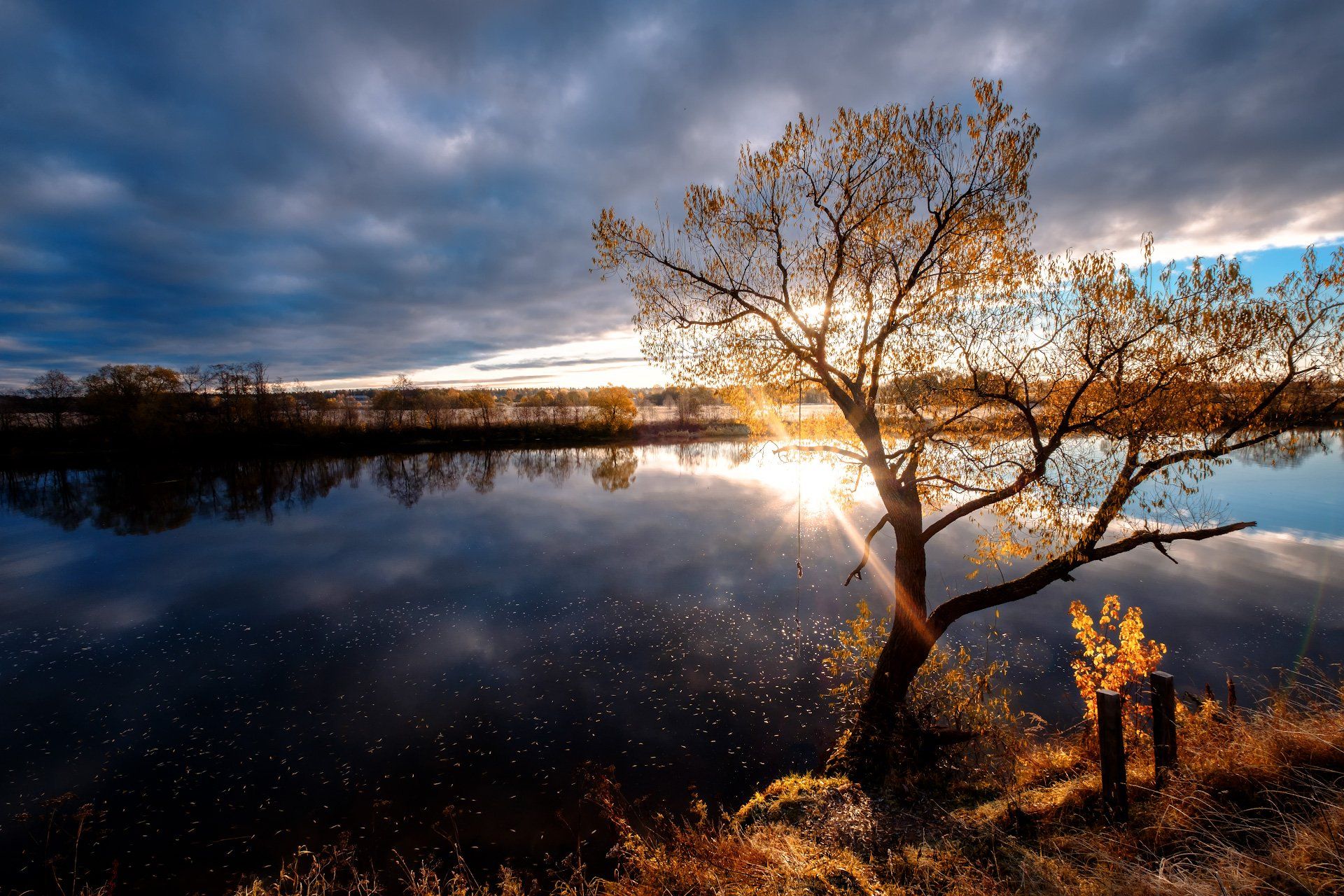 утро, тарзанка, солнце, река, рассвет, пейзаж, отражения, осень, облака, дубна, вода, Андрей Чиж