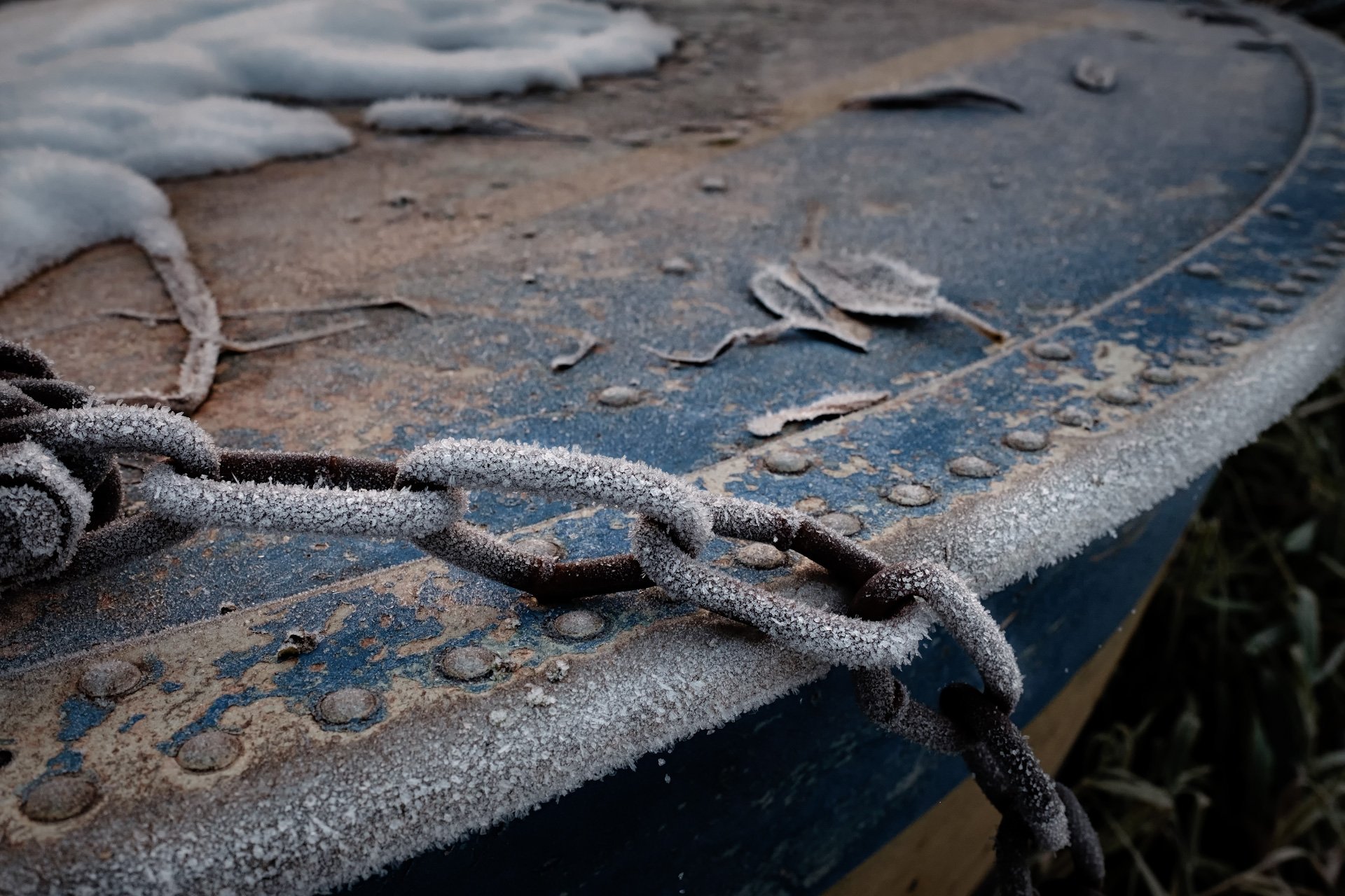 лодка, моторка, иней, снег, лед, цепь, изморозь, Андрей Чиж
