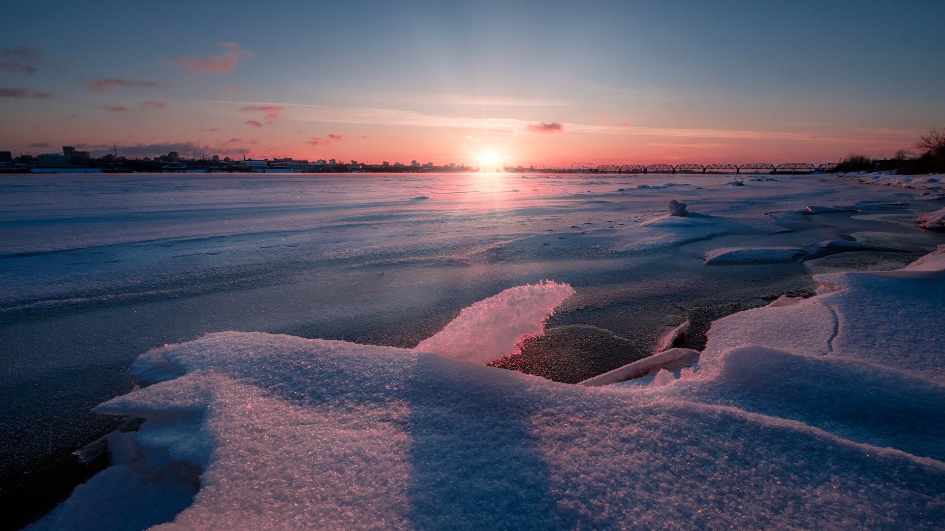 кама, река, зима, январь, лед, мороз, солнце, закат, Андрей Чиж