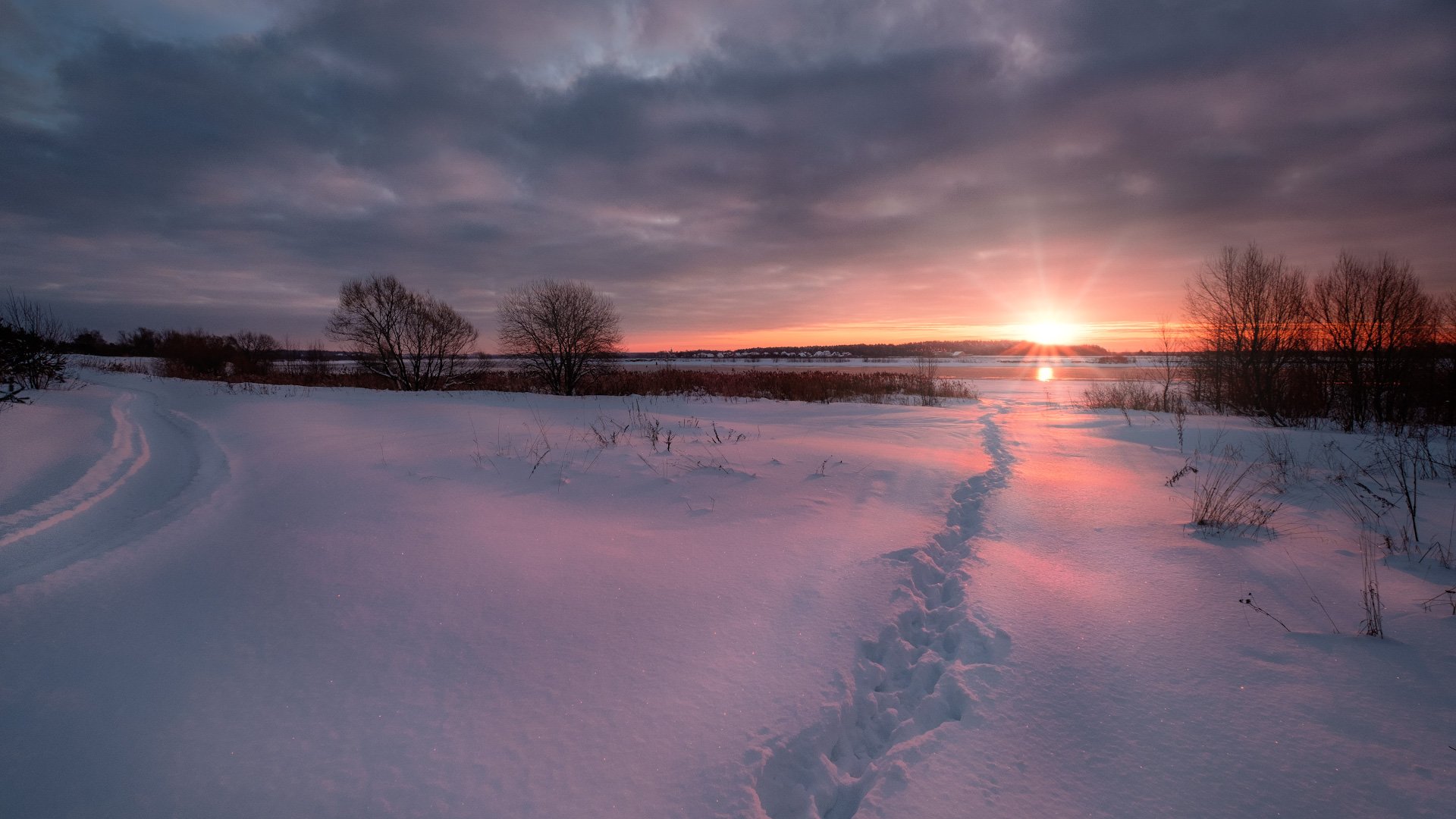 пейзаж, рассвет, река, волга, снег, солнце, облака, облачность, тропинка, холод, зима, мороз, Андрей Чиж