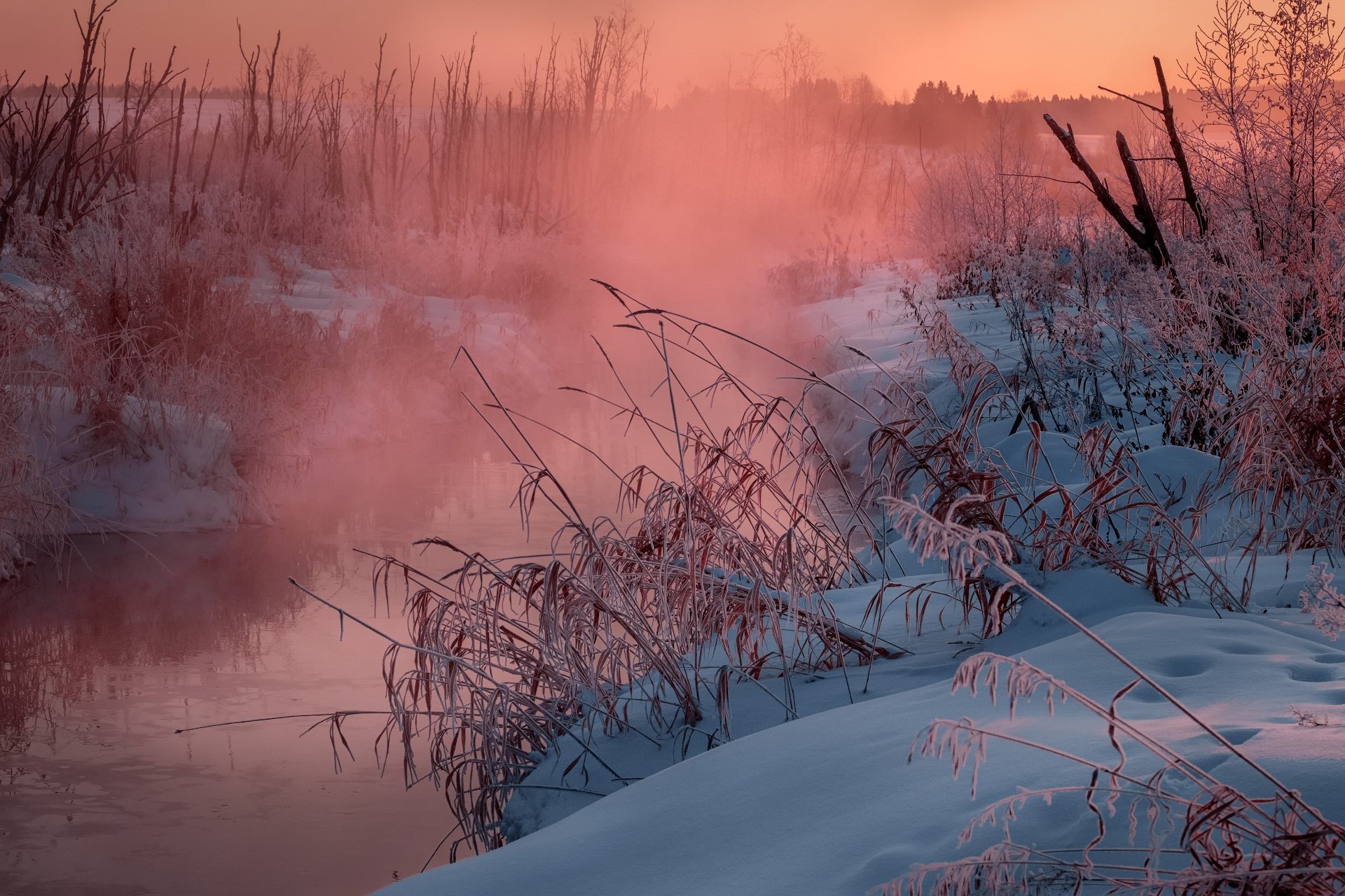 пейзаж, зима, река, лед, снег, утро, рассвет, восход, мороз, холод, усолка, россошка, пермь, пермский край, туман, Андрей Чиж