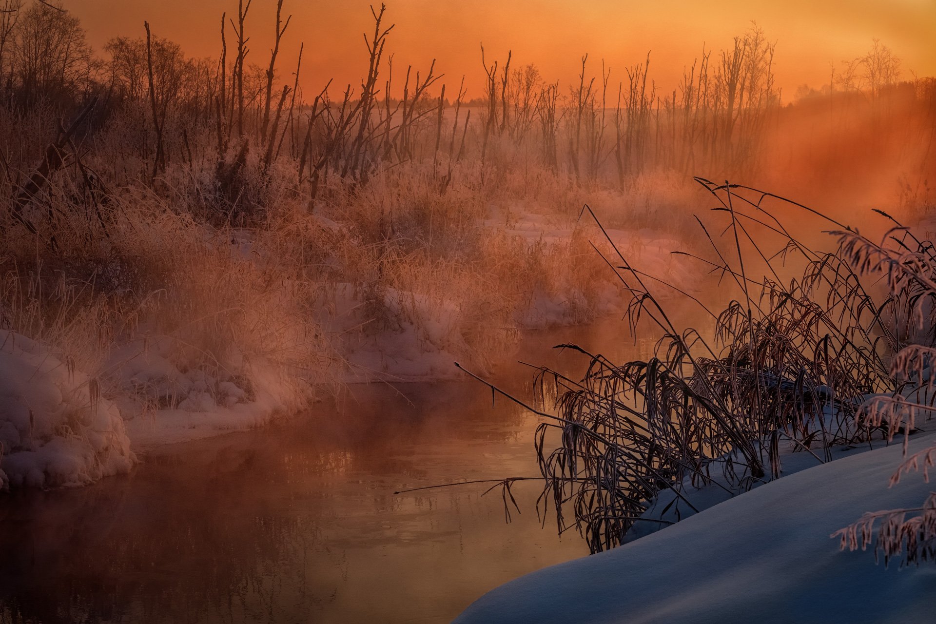 пейзаж, зима, река, лед, снег, утро, рассвет, восход, мороз, холод, россошка, пермь, пермский край, Андрей Чиж