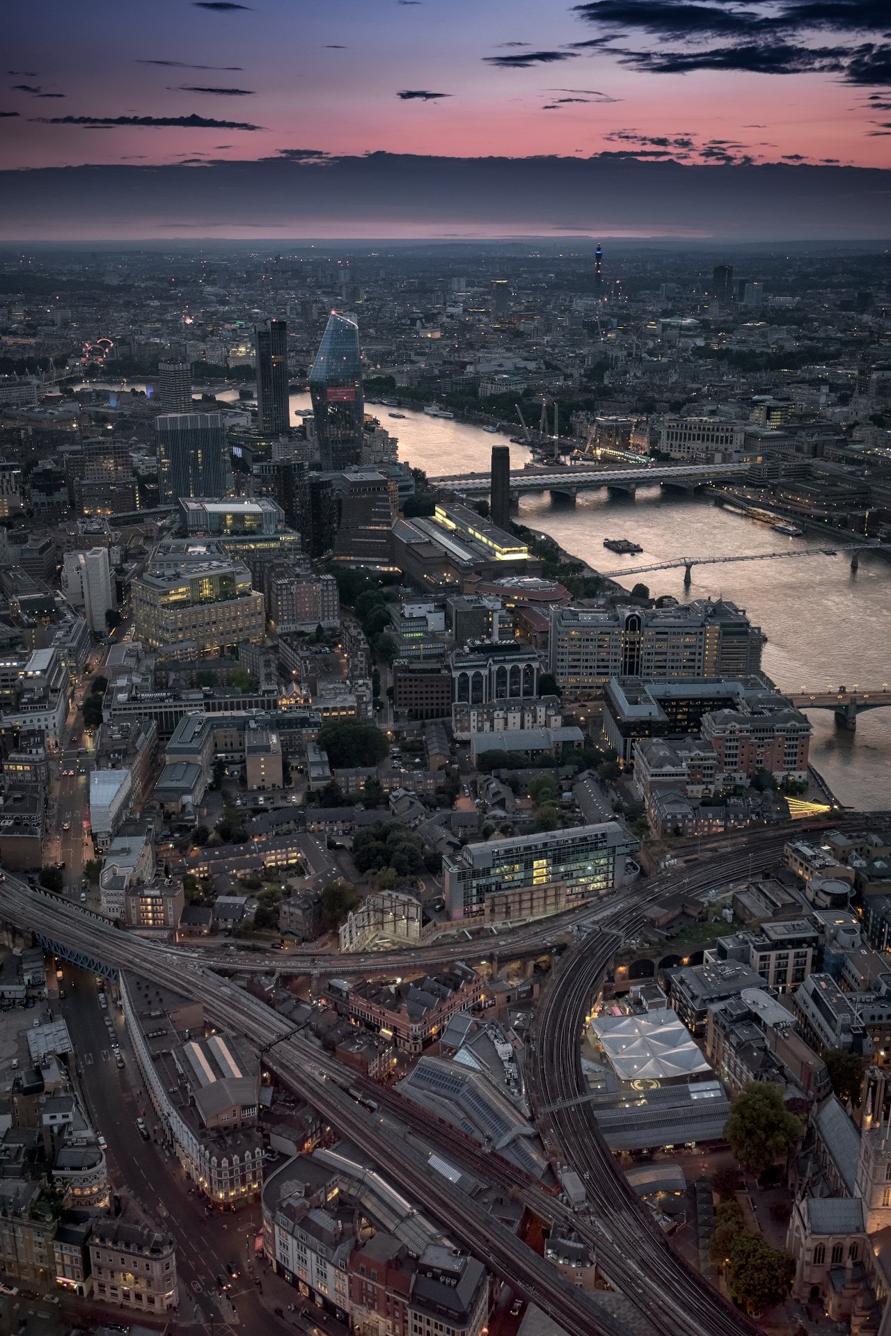 пейзаж, лондон, shard, город, темза, река, вечер, закат, Андрей Чиж