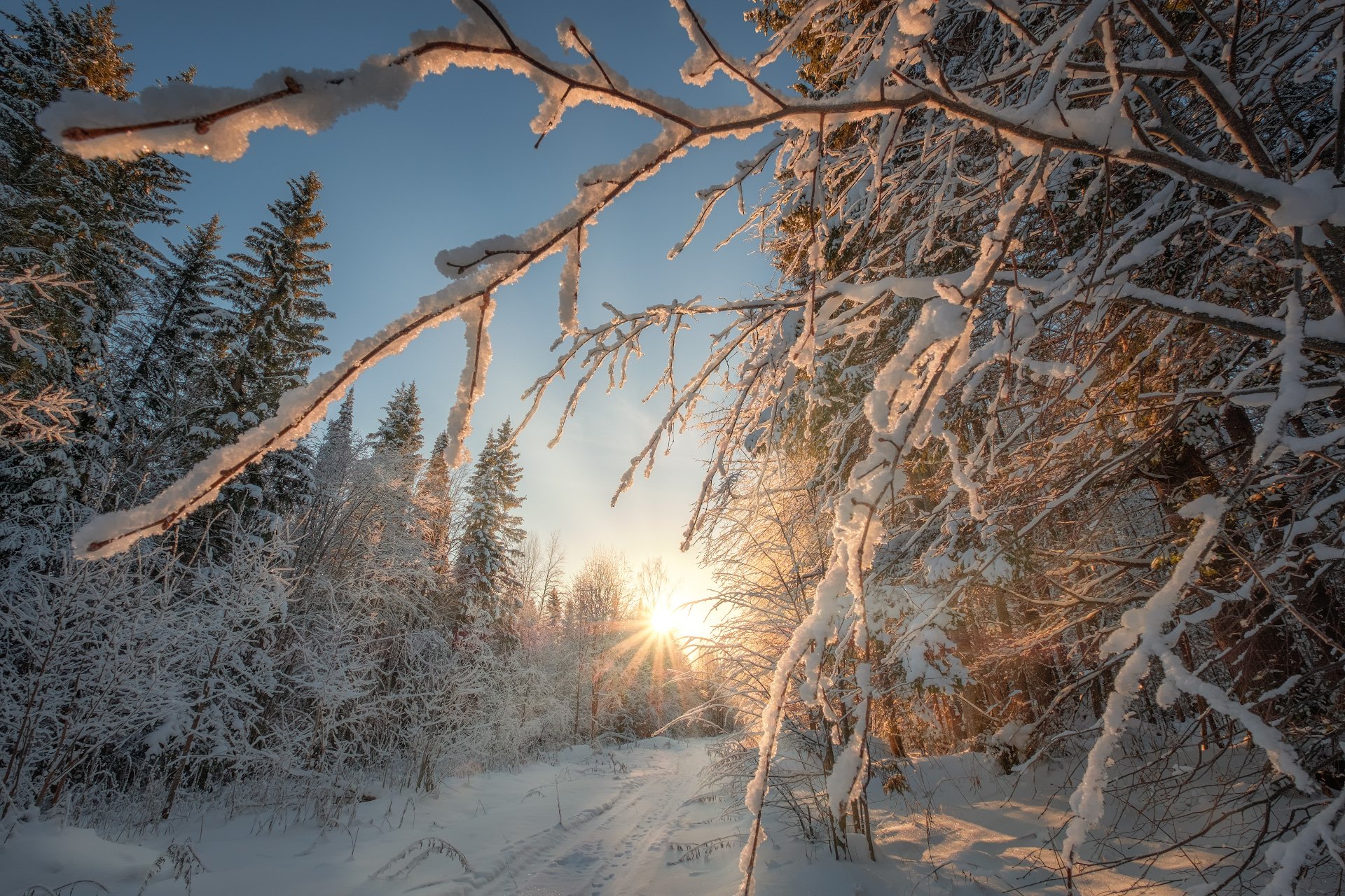 чусовая, пермский край, просека, зима, мороз, солнце, утро, лес, деревья, Андрей Чиж