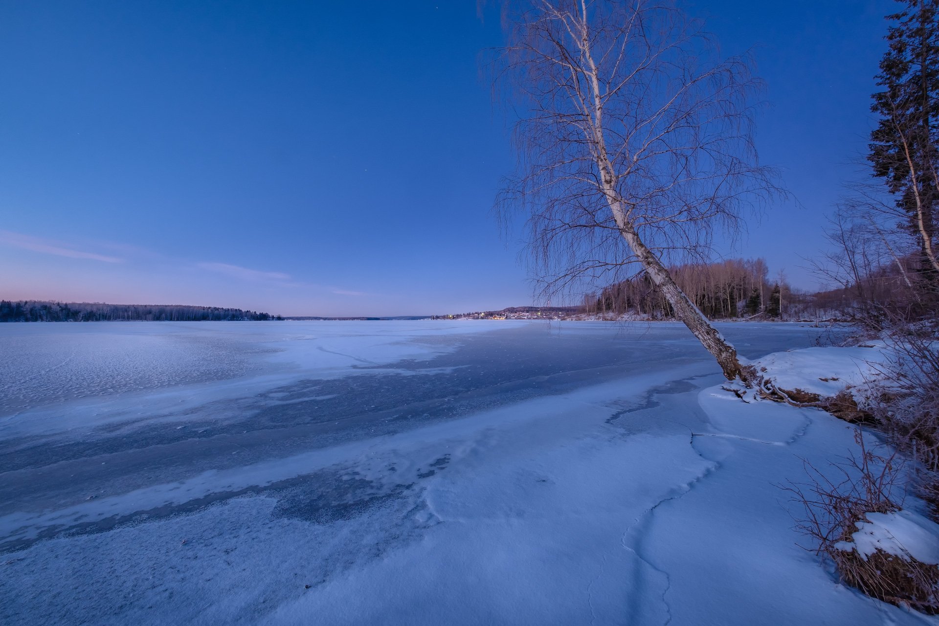 пермский край, чусовая, река, ноябрь, ночь, мороз, рассвет, залив, береза, лед, снег, Андрей Чиж