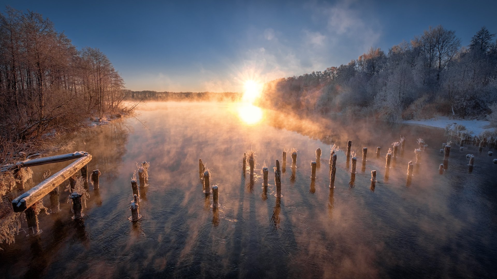 шатура, озера, мороз, декабрь, лед, вода, туман, пар, холод, пейзаж, Андрей Чиж