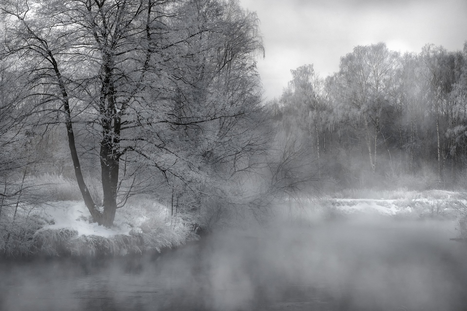 пехорка, река, зима, утро, туман, пар, холод, мороз, снег, лед, пейзаж, Андрей Чиж