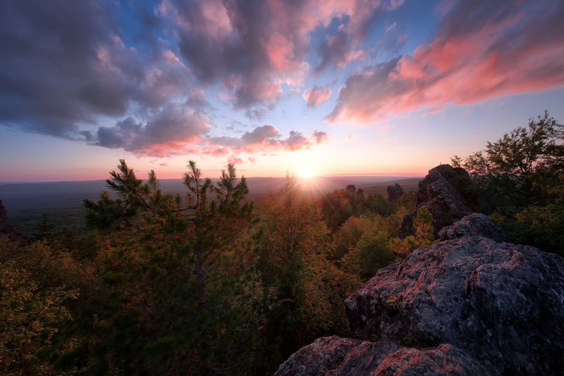 колпаки, гора, скалы, урал, пермь, закат, тайга, небо, облака, солнце, свет, Андрей Чиж