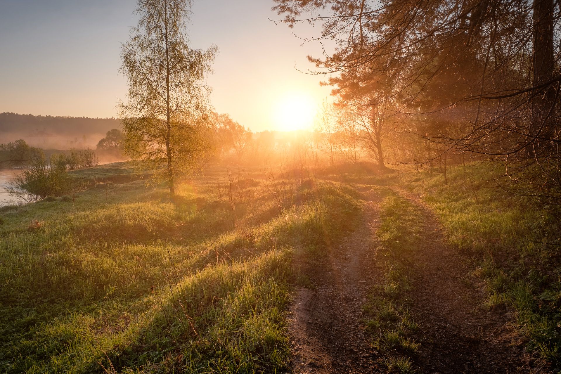 истра, утро, солнце, деревья, зелень, роса, рассвет, река, пейзаж, Андрей Чиж