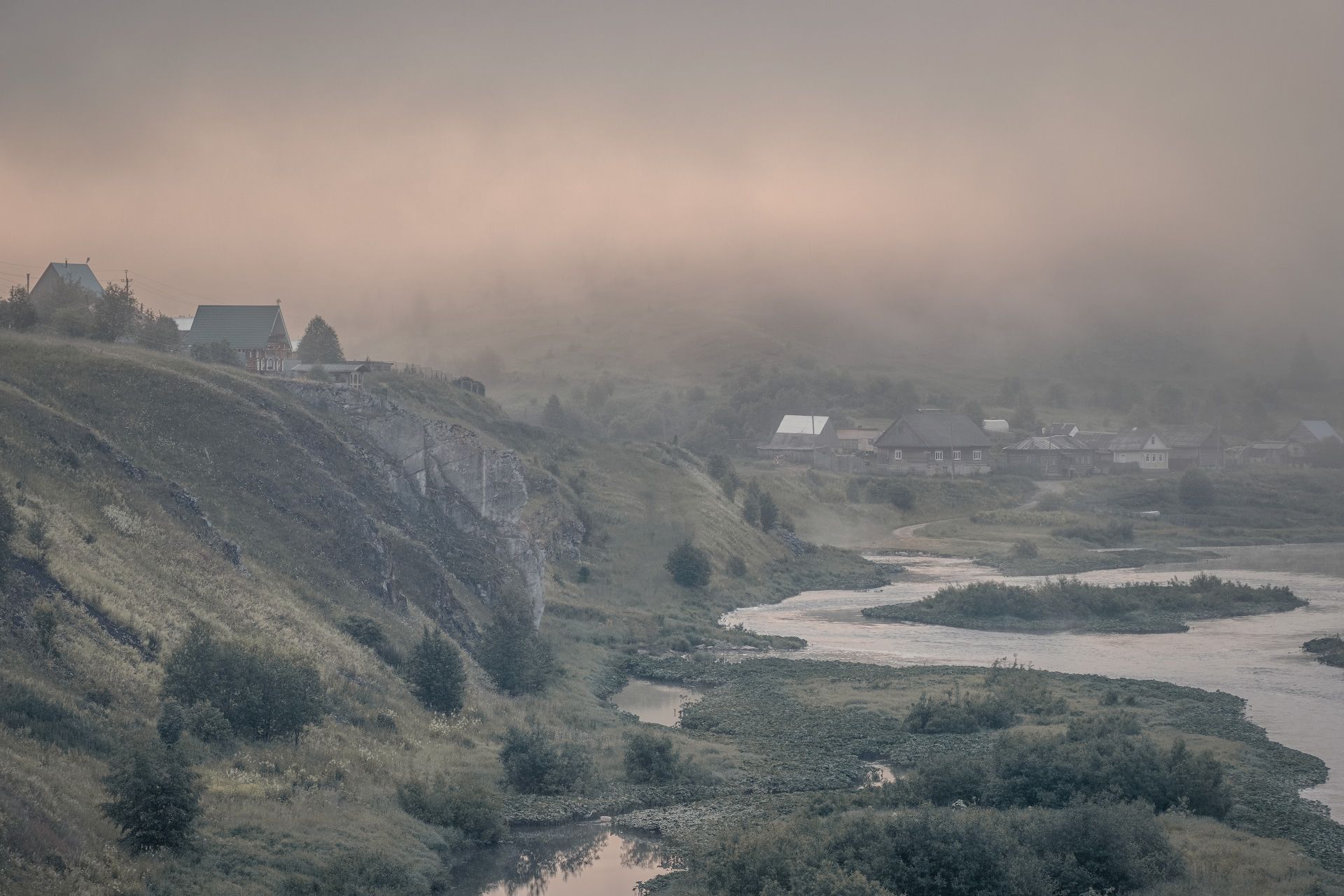 утро, рассвет, лето, кусья, река, село, туман, облака, скалы, Андрей Чиж