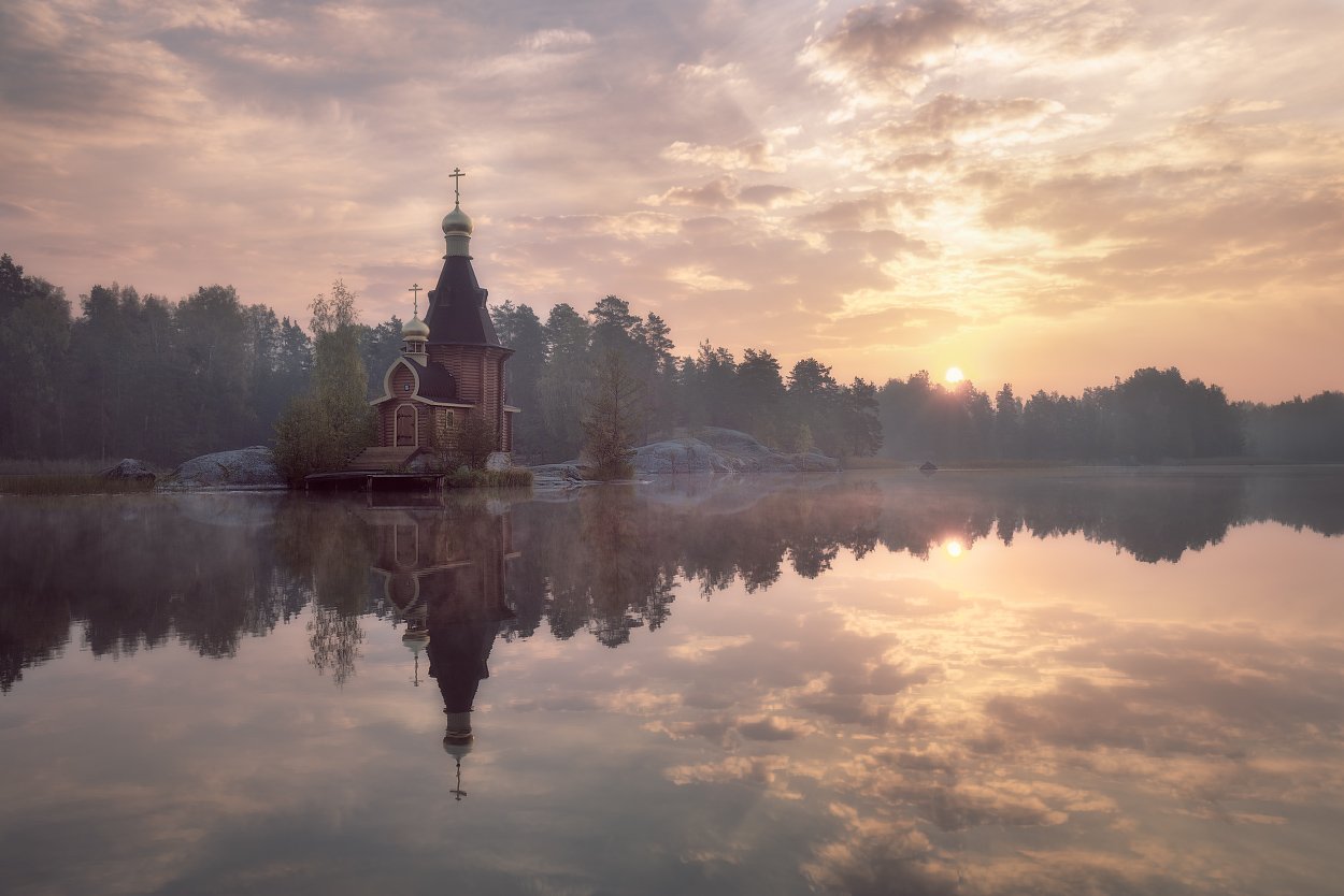 Осень, Рассвет, Река, Церковь, Сергей Лукс