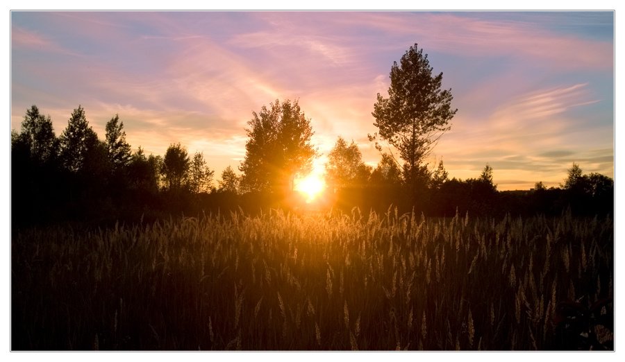 Ушло лето, уходят теплые деньки, природа впитывает в себя энергию пока еще ласкового солнца. Подольский район, не далеко от поселка Кузнечики, вечер, закат, снимал с рук, градиентник 50%