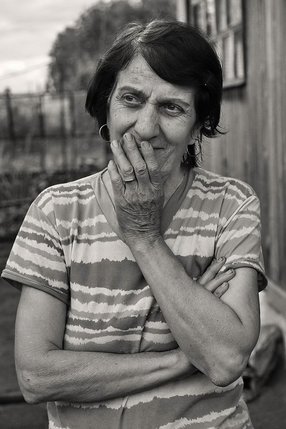 Целая история! И натруженные пальцы, с характерными для труженницы ногтями, и обручальное кольцо и крашенный седой волос, а какой полный заботы взгляд! Снимаю шляпу!