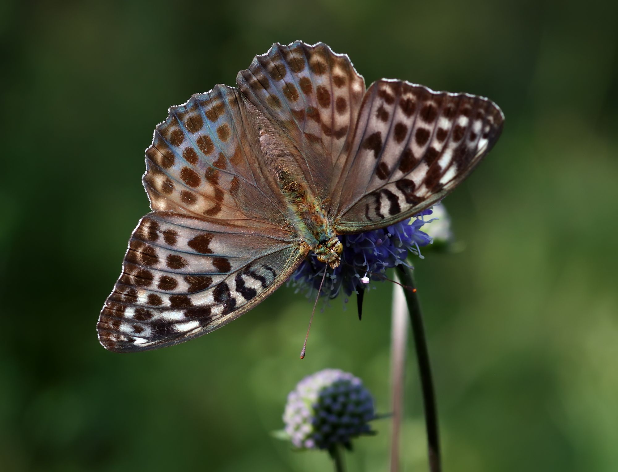 Если не ошибаюсь, это Перламутровка большая лесная (Argynnis paphia) самка.