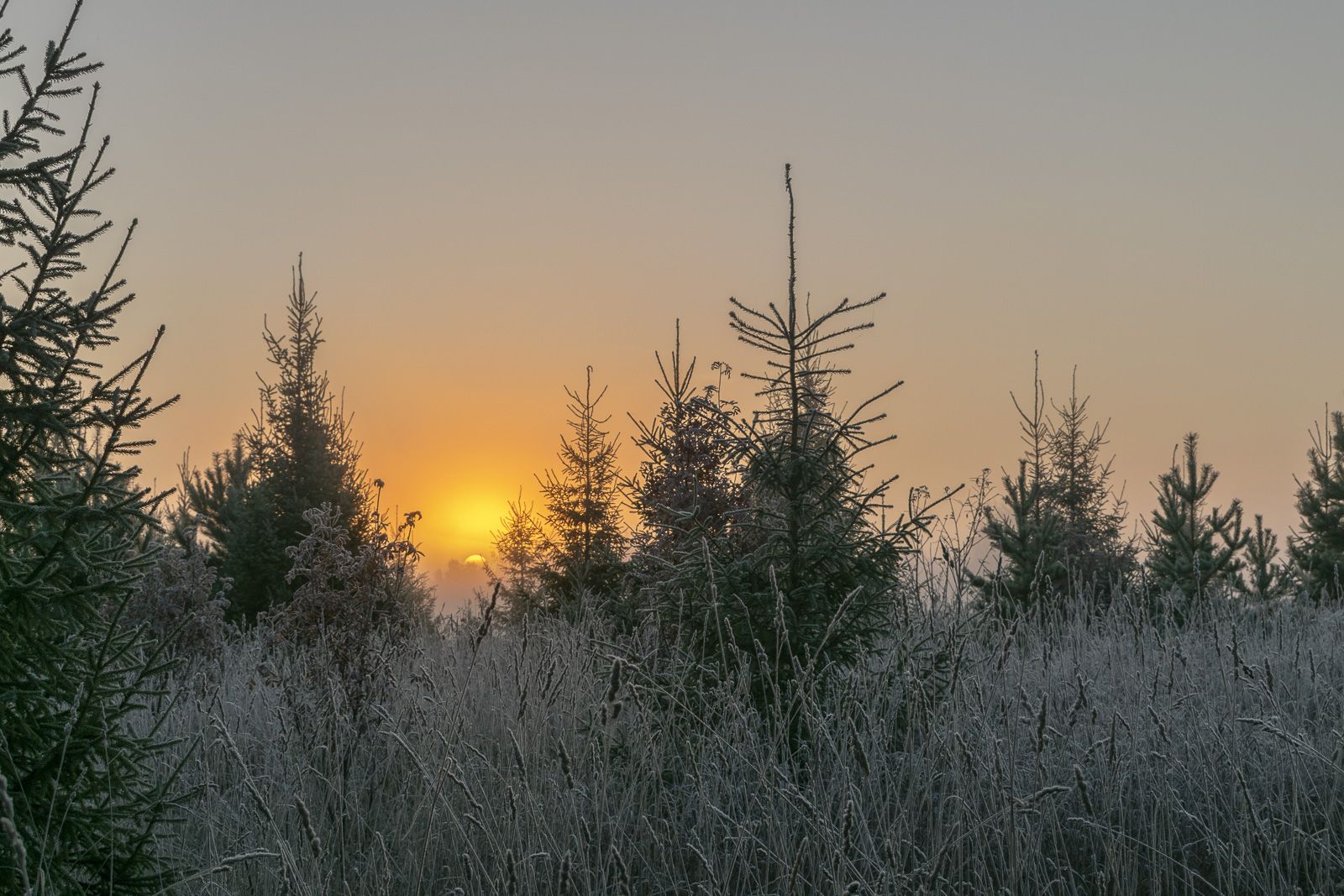 рассвет, туман, осень, иней, трава, деревья, Галина Луценко