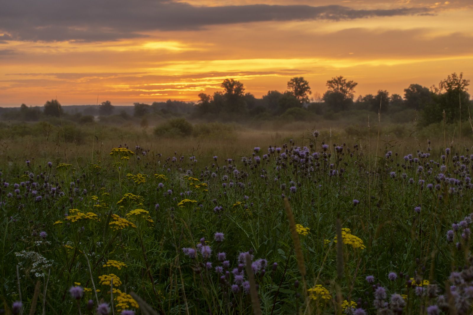 Рассвет, цветы, луг,туман, лето, зелень, трава, Галина Луценко