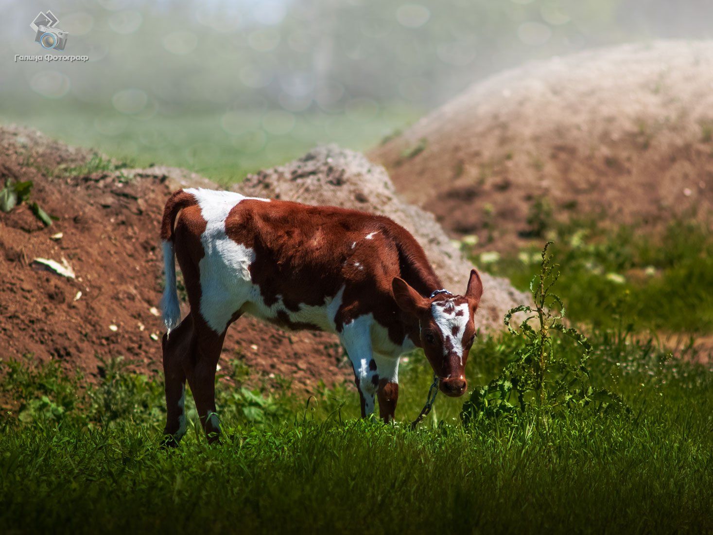 Молоденькая тёлочка) Резвая такая! В конце даже отвязалась и стала носиться, как стрекоза. Но видимо такое добро без присмотра не оставляют, вскоре появился фермер и опять привязал непоседу)