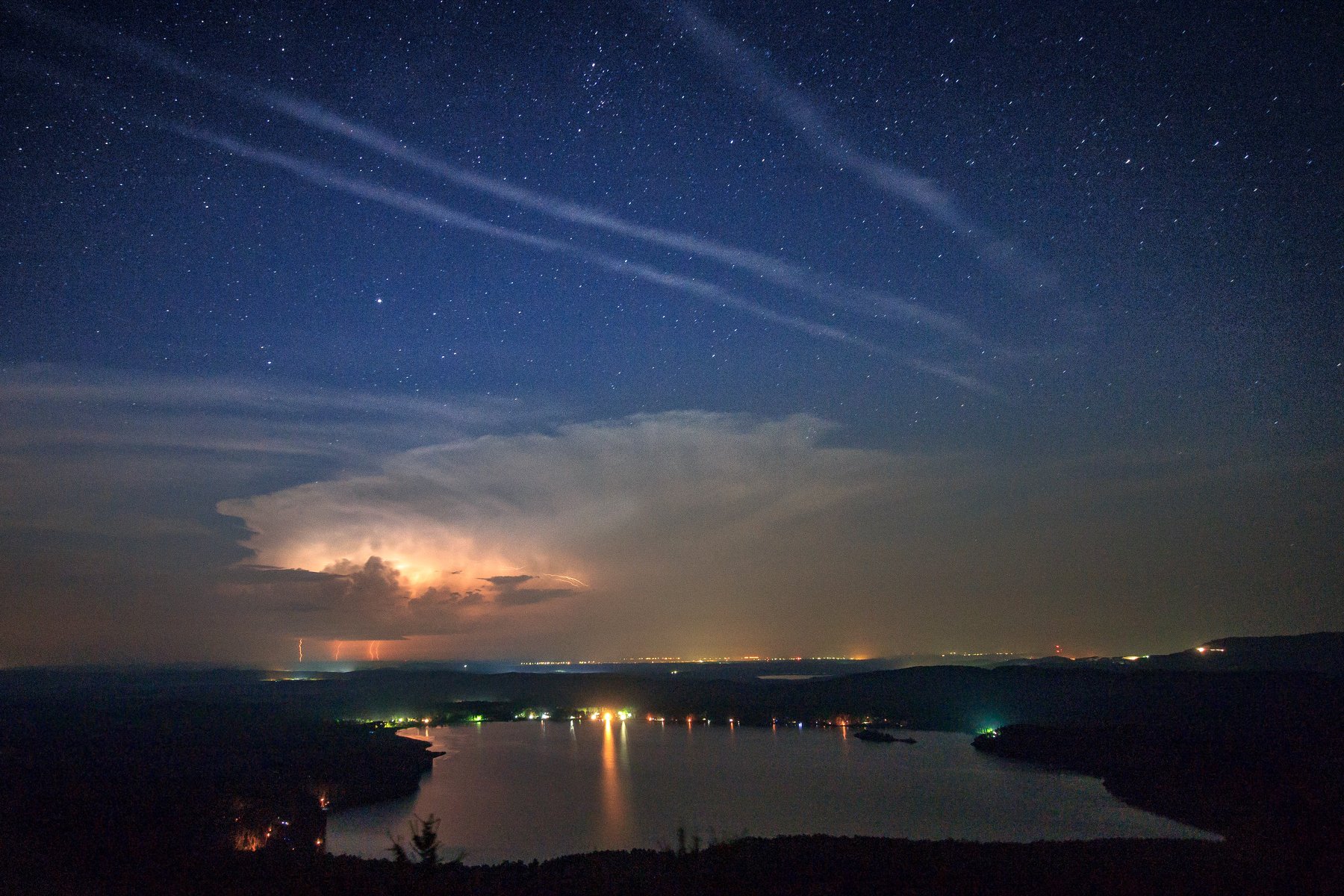 персеид, млечный путь, гороза, молнии, ночной пейзаж, ночь, огни, природа, пейзаж, озеро, вода, пруд, река, скала, камни, камень, шихан, урал, южный урал, аракуль, звезды, небо, метеор, лес, Сергей Гарифуллин