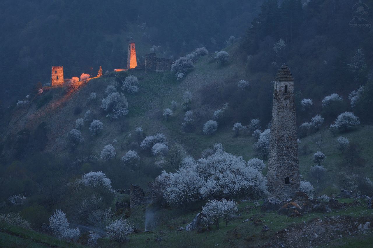 Конец апреля начало мая в Ингушетии цветут кустарник и деревья, на склонах появляется свежая травка, красота. От созерцания гармонии архитектуры и природы получаешь эстетическое удовольствие.