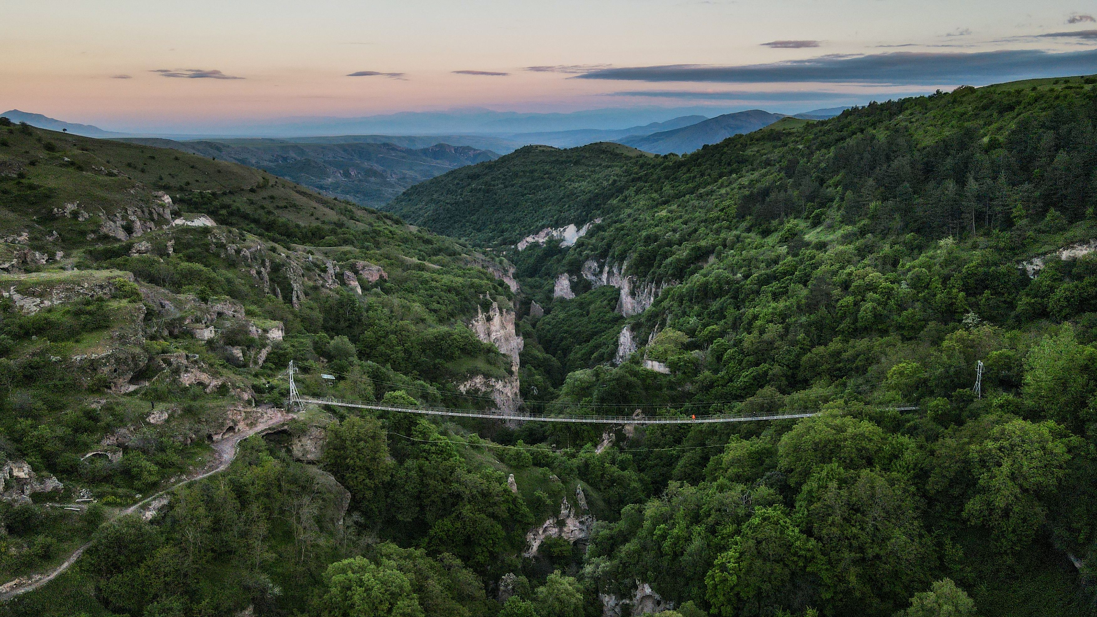 Армения, Сюникская область, пещерный город Хндзореск, подвесной мост, Юрий Гаврилов