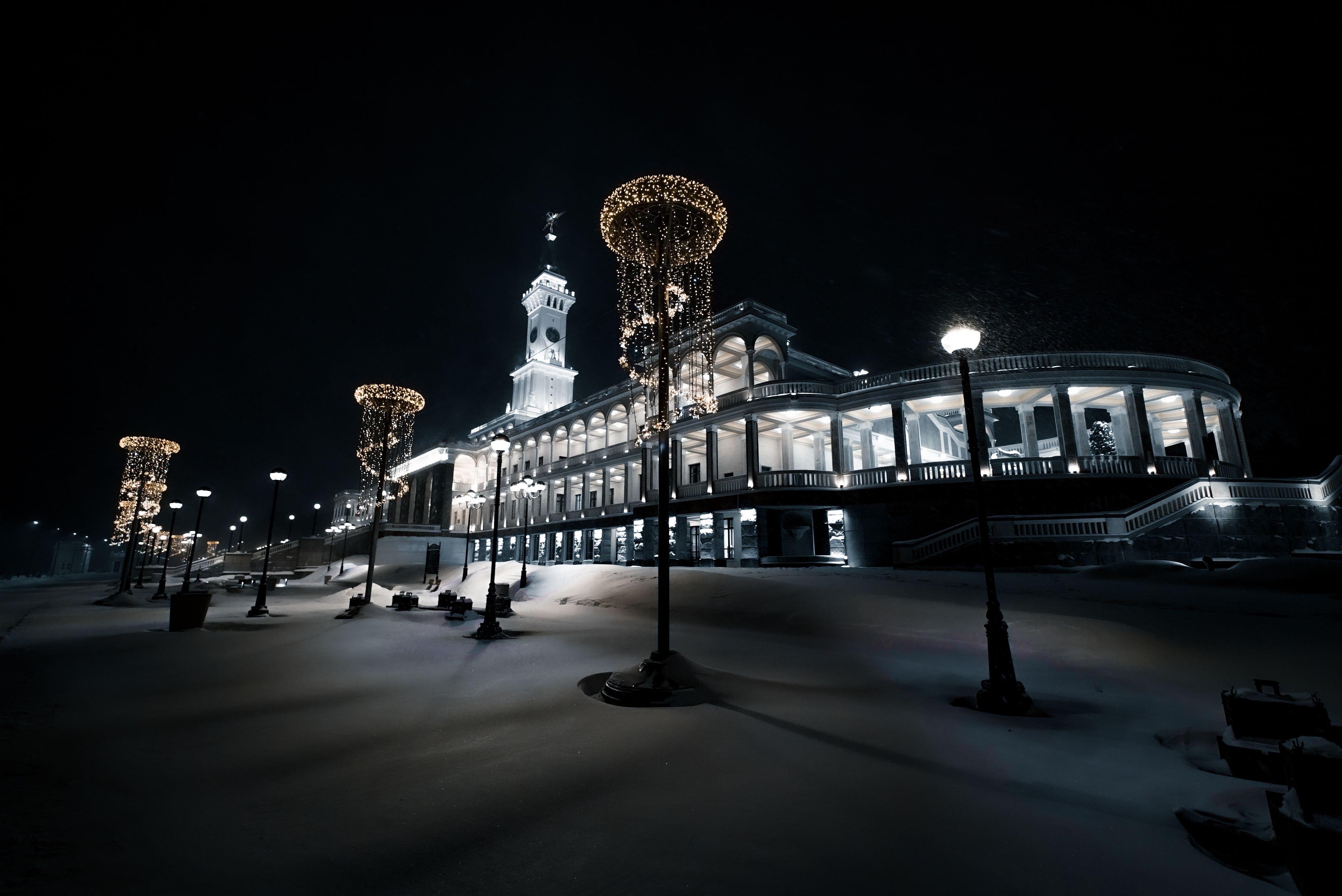 В тот день была сильная метель, мы на лыжах перешли Химкинское водохранилище от парка Северное Тушино к Речному вокзалу, поэтому следов нигде нет.