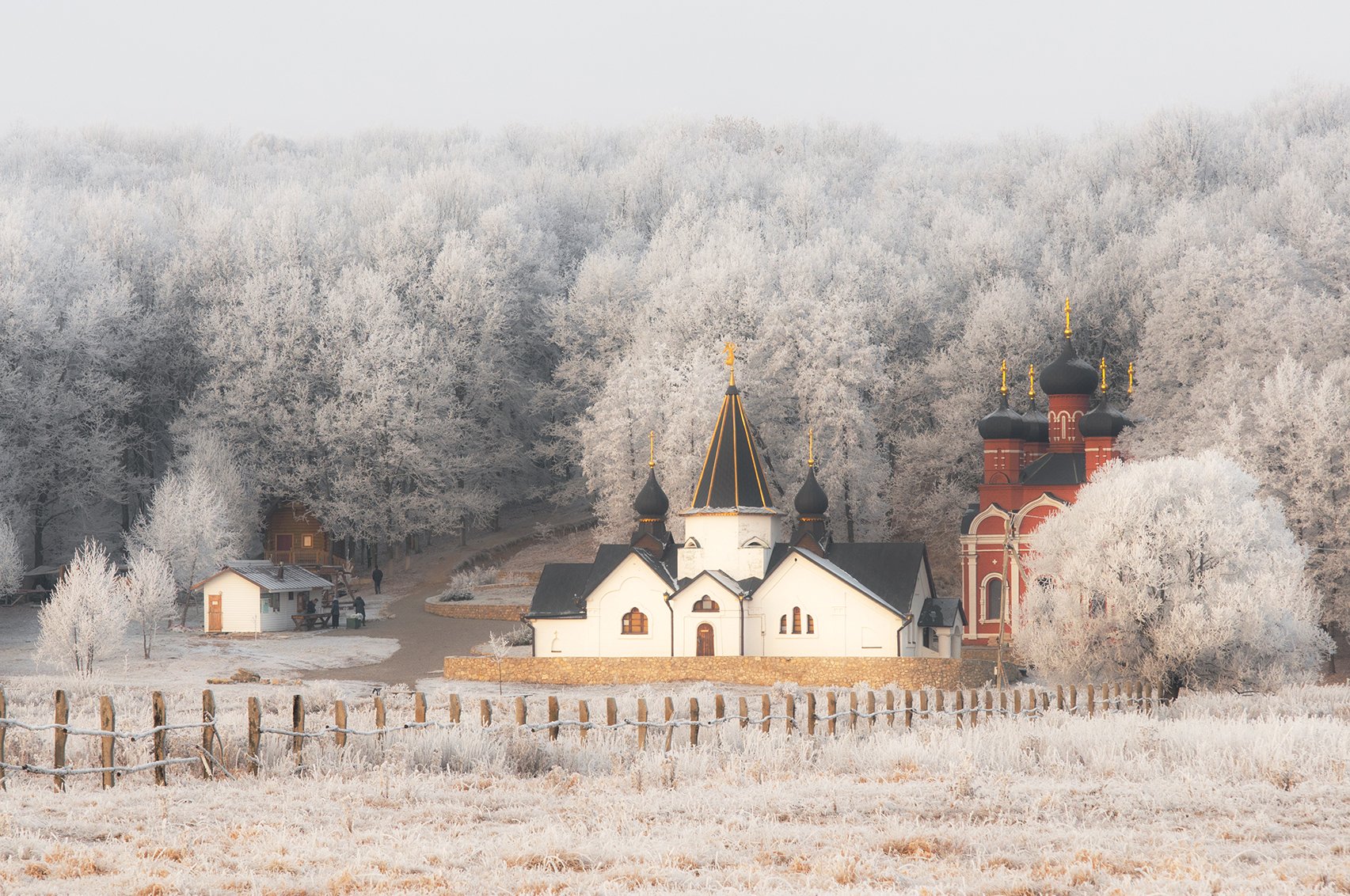 Зимний вид с южной стороны на Надкладезную часовню и купель Святого источника Иоанно-Богословского монастыря в селе Пощупово Рыбновского района Рязанской области.