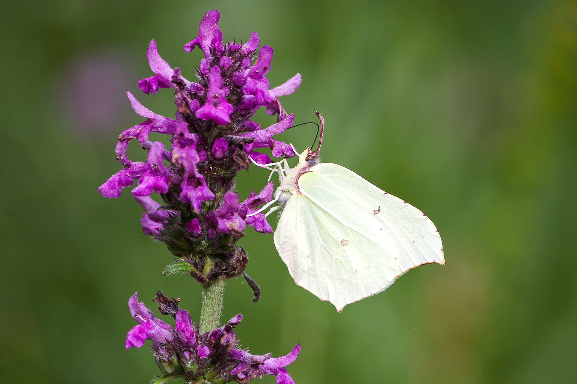 Крушинница, или лимонница, или лимонница обыкновенная, или лимонница крушинная, (Gonepteryx rhamni). На цветке Буквицы лекарственной (Betonica officinalis).