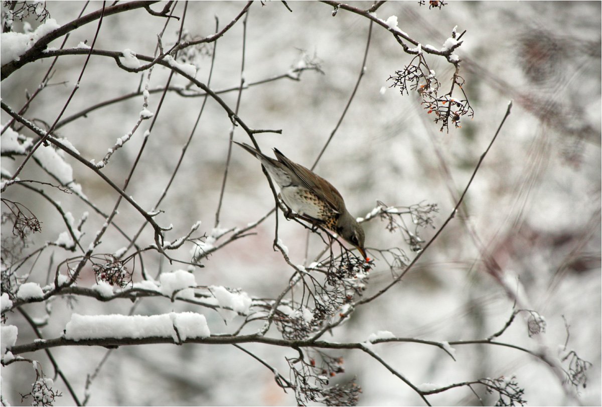 Найдет. Весной, когда снег тает, они по второму кругу прилетают и собирают ягоды, которые осенью от изобилия(клевали только отборные ягодки) на землю покрошили.)