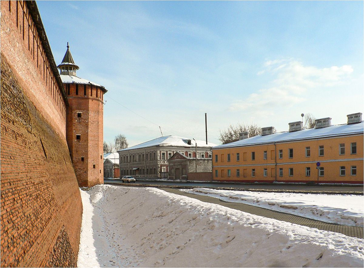 Слева видна Грановитая(1525-1531гг) башня Коломенского Кремля и часть Крепостной стены.