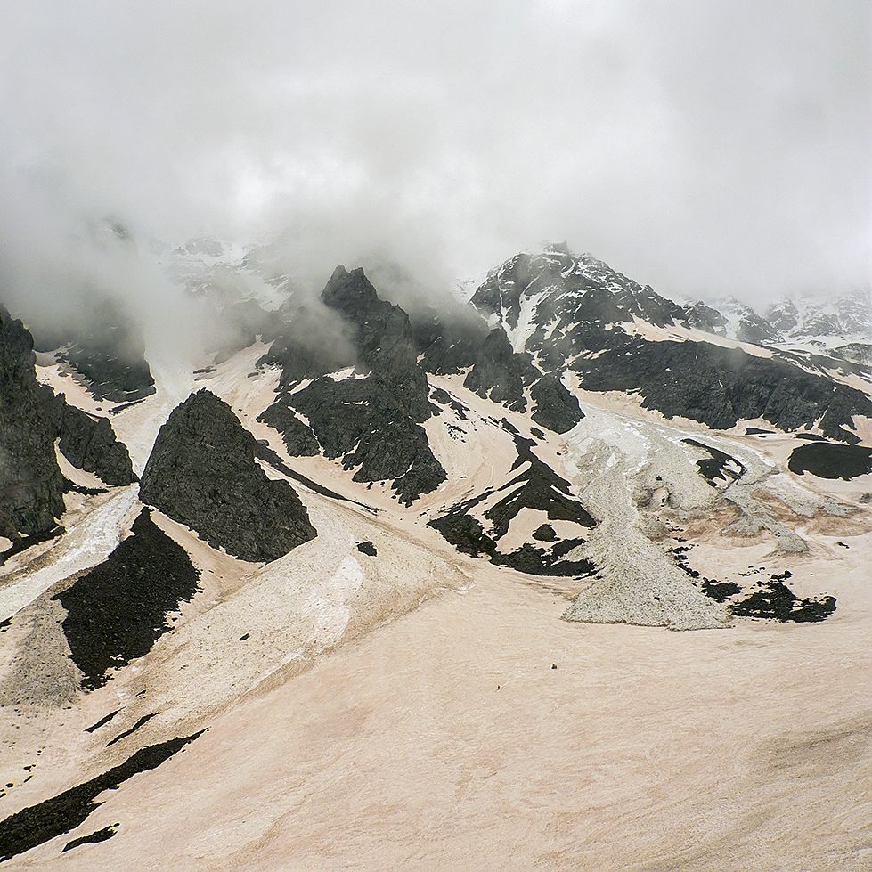 Цейское ущелье(Цей) расположено в Алагирском районе Северной Осетии у подножия горы Адайхох в ущелье реки Цейдон. Цвет снега был именно таким - коричнево-розовым...