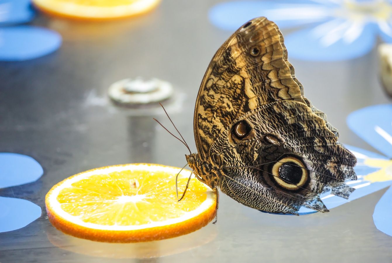 Бабочка-сова Калиго (OwlbutterfliesCaligo). Бабочки-совы известны своими огромными глазными пятнами, которые напоминают глаза совы. Такие "глаза" отпугивают атакующего хищника и отвлекают его внимание от жизненно важных частей тела бабочки.