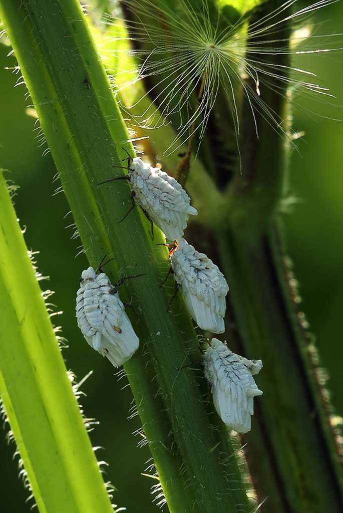 ... Что может быть интересного под пологом жгучих крапивных листьев? вроде- ничего! Не совсем! Посмотрите- в близи- эти странные, белые плевки, покрывающие стебли крапивы, являются очень грациозными, хрупкими и по своему красивыми созданиями!
