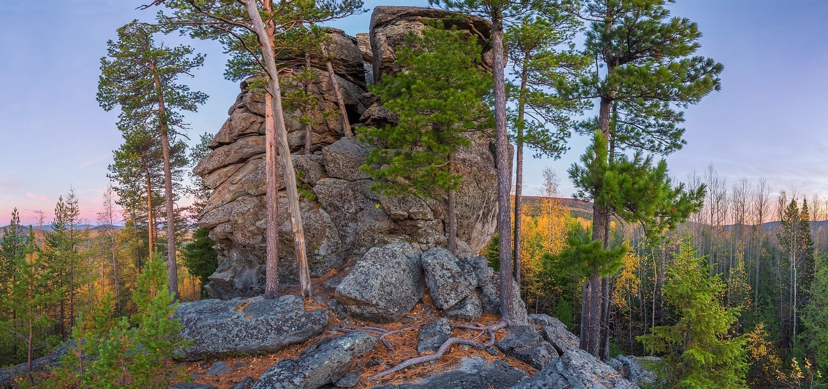 Гранитные останцы, левый берег реки Лямпа, южный склон горы Большая Брусковая, Главный Уральский Хребет, Свердловская область, Северный Урал, сентябрь 2015