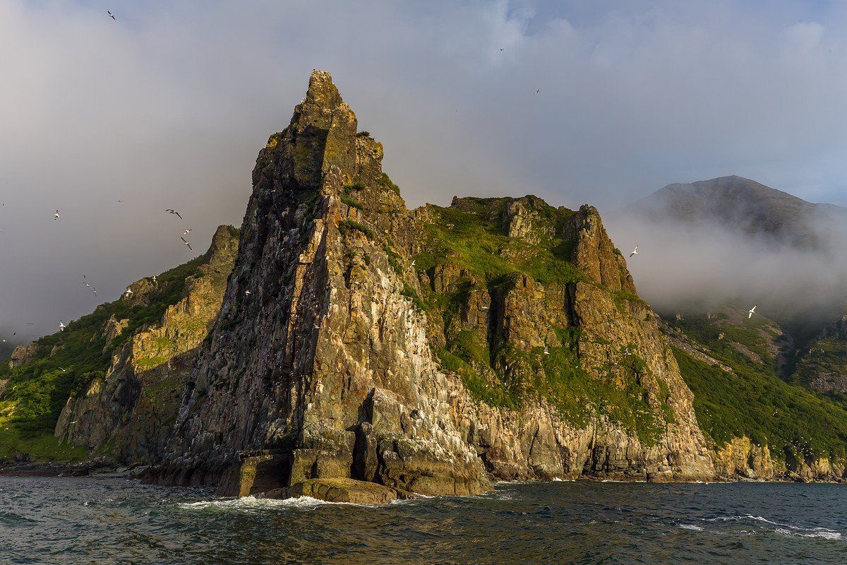 Неприступные скалы полуострова поднимались из прозрачных холодных морских вод почти вертикально, и ни подойти к ним, ни высадиться на берег было невозможно. Туман и парящие в высоте чайки и чистики показывали своеобразный характер этих прекрасных мест, заставляя удивляться их нетронутости лишь с борта морского катера.