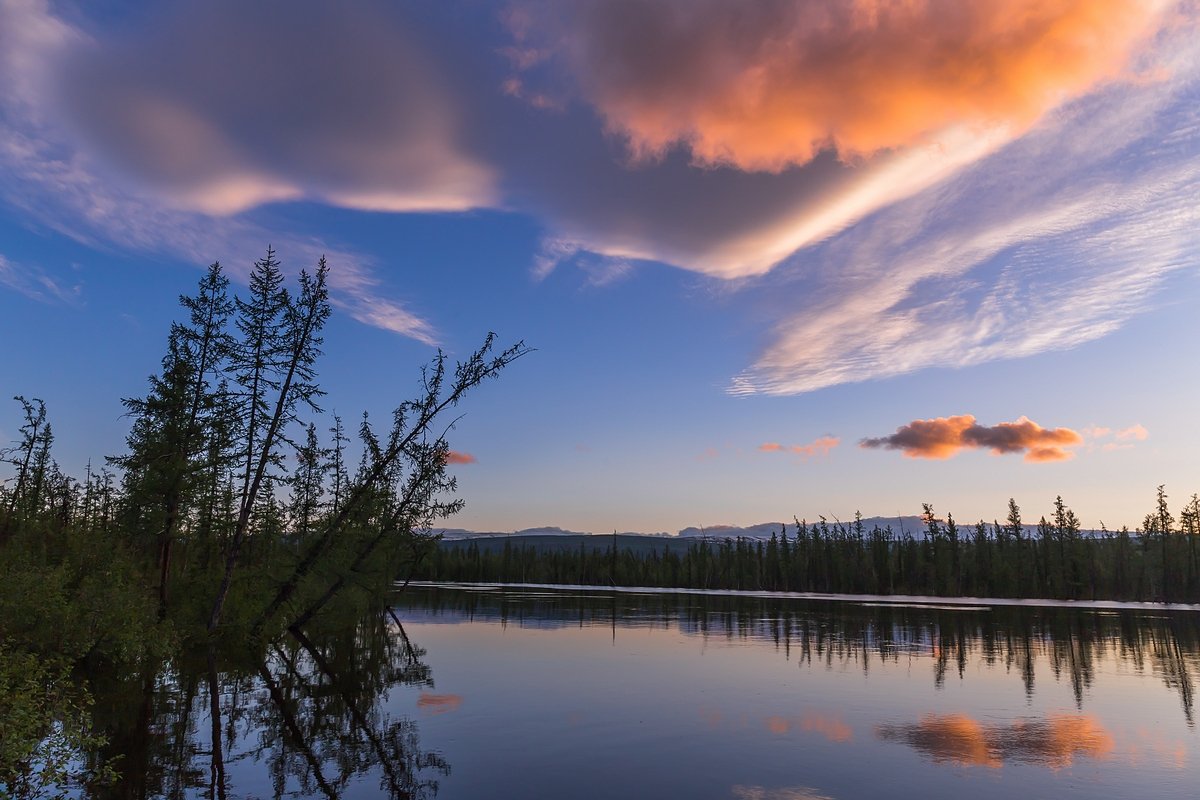 Путешествуя по путоранским озерам, мы заплыли в небольшую протоку половить тайменей. Погода стояла тихая, ветер почти стих, и только полчища комаров доставали у побережья. В какой то момент в очередной раз смотря на водную гладь, мы обнаружили разрастающиеся оранжевые сполохи. Побросав удочки мы схватились за фотоаппараты. Рыжая феерия продолжалась в небе несколько минут, пока наконец все не разогнал постепенно подобравшийся ветер. Тайменя мы так и не поймали, но на память осталось сказочное ночное небо. Озеро Дюпкун, плато Путорана, Эвенкия, 2014.