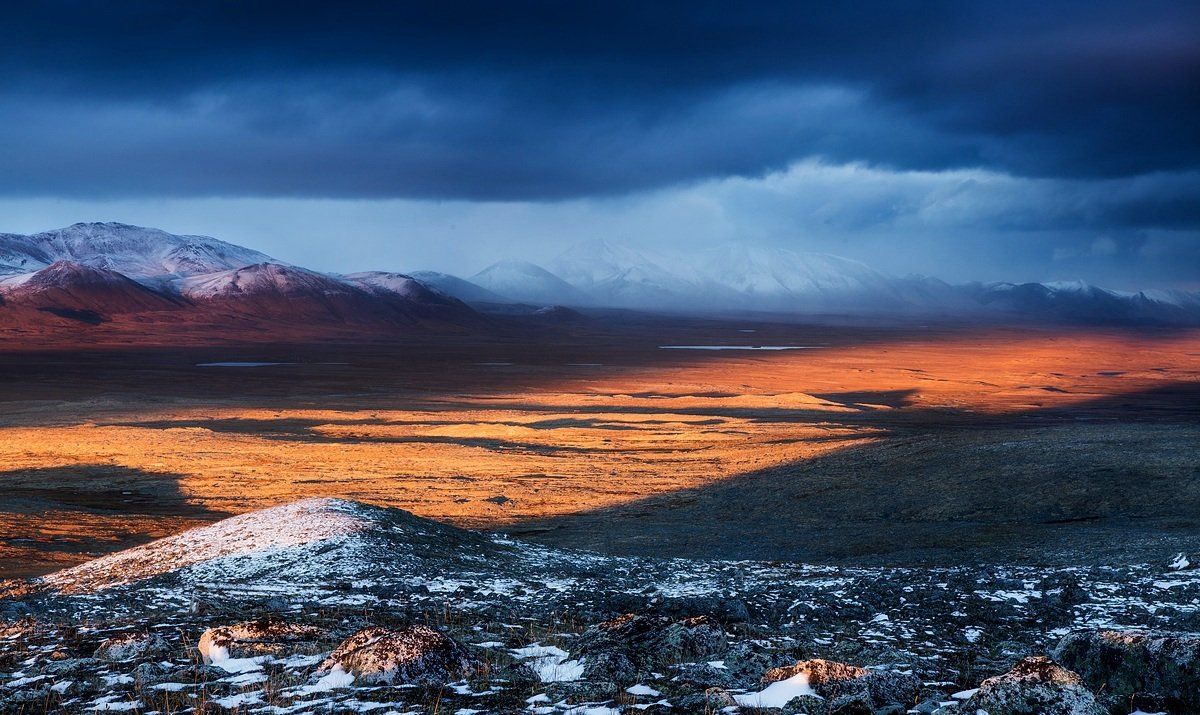 Низкие свинцовые тучи казалось вот-вот обрушатся на наши головы еще раз, но уходящий циклон не стал этого делать. Вместо этого он, как бы извиняясь, приоткрыл завесу облаков и яркий солнечный луч пронзил тьму в уже начавшей промерзать августовской тундре. Дебри хребта Черского, Якутия.