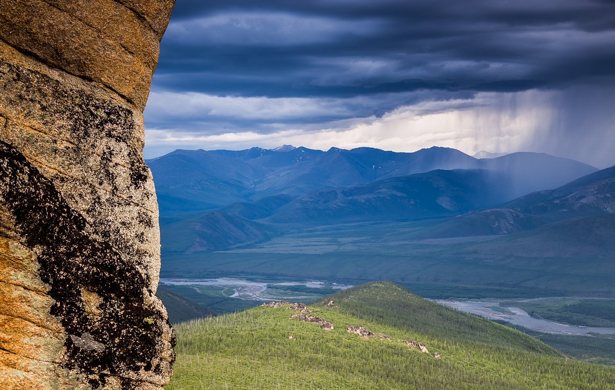 Забравшись на высокие скалы близ Усть-Неры на Индигирке, мы поначалу расстроились, что погода начала резко портиться. Но прошедший над Нерой ливень создал такой невероятный контраст, который наблюдать со стороны, стоя на сухих гранитах, было большой удачей. Оймяконский улус, Якутия.