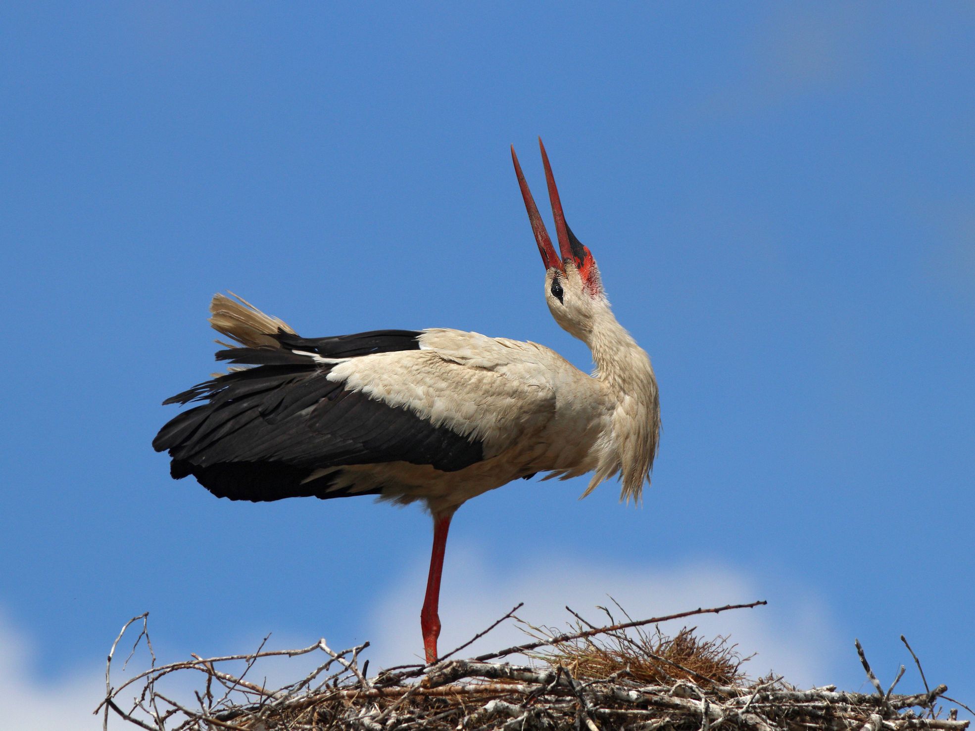 Большая белая птица с чёрными маховыми перьями крыльев, красным клювом и ногами. Молодые птицы с черноватым клювом и жёлто-серыми ногами. По окраске самец и самка похожи, но самка несколько меньше самца. Молчалив, настоящего голоса нет. При возбуждении громко трещит клювом, закинув назад голову. Населяет открытые пространства с группами деревьев и водоёмами от лесной до пустынной зон, в культурных или значительно изменённых человеком природных ландшафтах. зимует в Южной и восточной Африке. Гнёзда устаивает на крышах строений, на высоких столбах и деревьях, изредка - на стогах. Гнездо с каждым годом надстраивается.