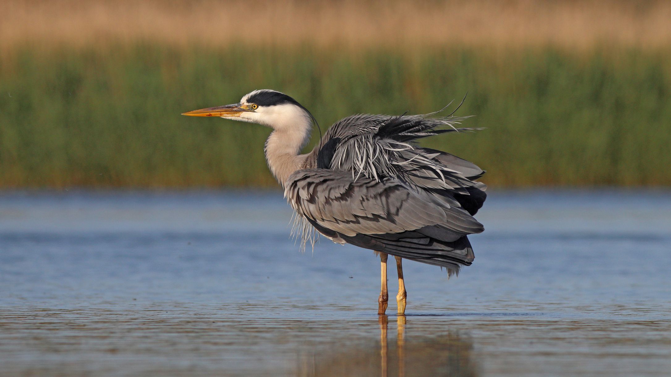 Самый крупный вид Европейских цапель. Самцы и самки не отличаются по окраске, но самки несколько меньше. Голос - громкий и хриплый крик, который птицы часто издают в полёте. Гнездится колониями в кронах высоких деревьев, на кустах или в тростниках. За кормом может ежедневно летать на очень далёкие водоёмы, до 50 километров в одну сторону. Кормиться на мелководьях, речных косах, во второй половине лета на лугах и скошенных полях. Охотится главным образом на рыбу, но также и на насекомых, мышей, змей, птенцов и даже на взрослых малых поганок. Снято на территории национального парка "Куршская коса".