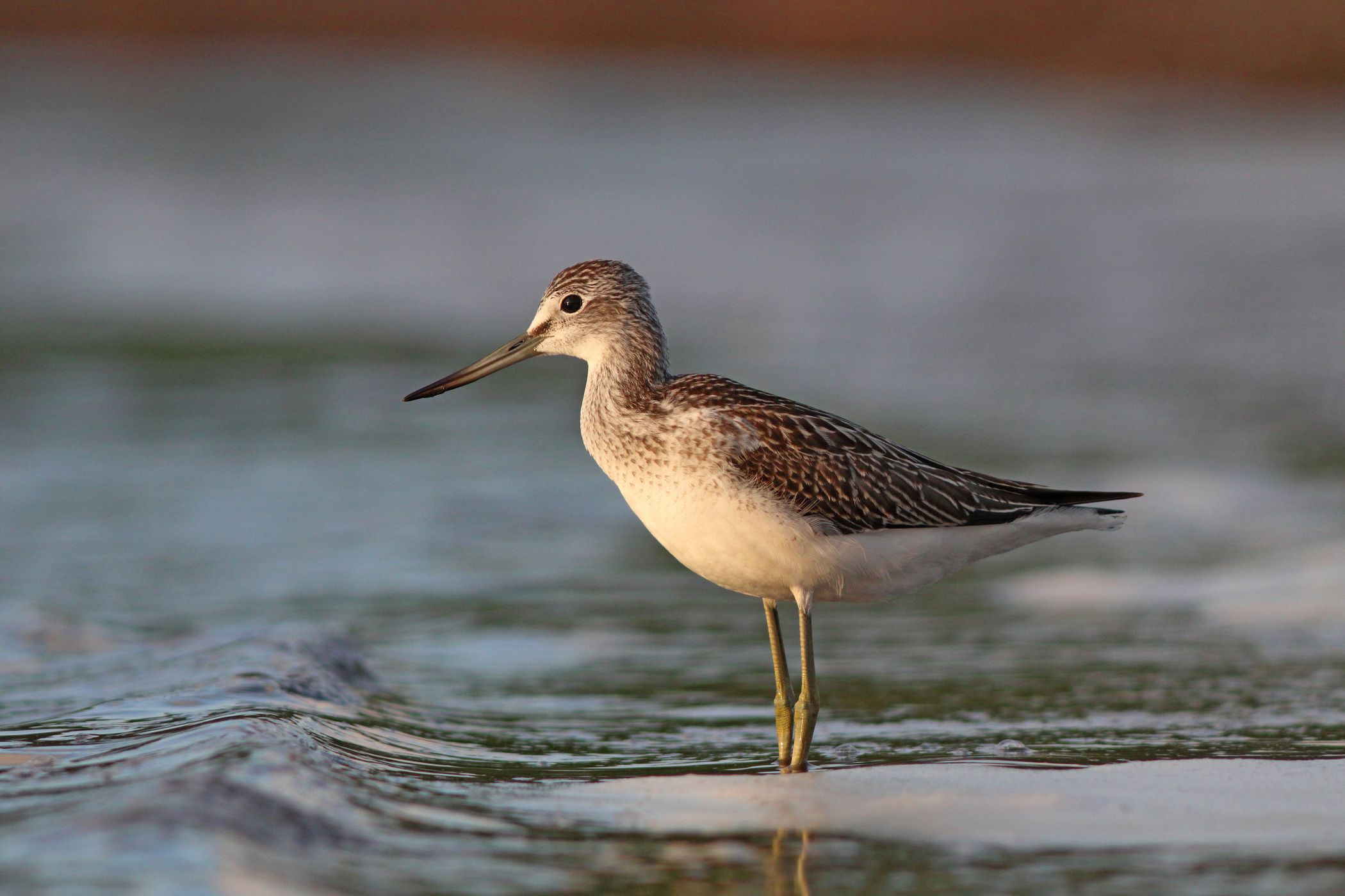 Оперение светлое, пепельно-серое, крылья окрашены в более тёмный цвет. В летнем оперении на груди отчётливые пестрины, в зимнем оперении они размыты. Ноги в зимнем оперении оливково-серые, в летнем - желтовато-зелёные. Длинный клюв слегка загнут вверх. При взлёте издает пронзительный крик "тью-ю". Крик при опасности: "крии...крии". Может плавать и нырять, если его преследует хищник. Распространён в зоне лесотундры по всей Евразии. Снято на восточном побережье Куршского залива, пос. Красное, Калининградская область.